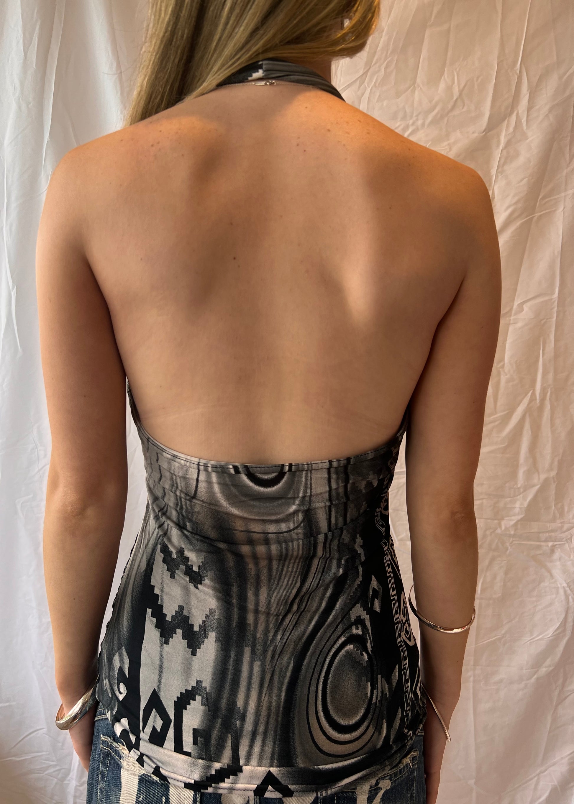 Funky printed black and white halter neck